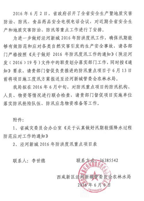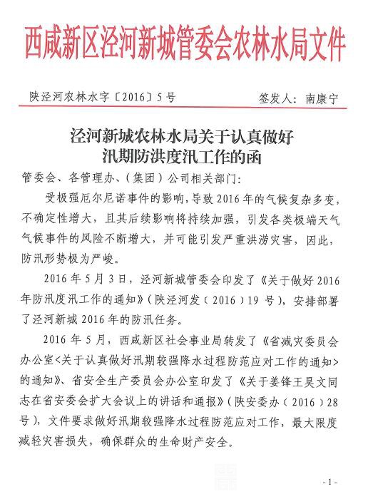 泾河新城农林水局关于认真做好汛期防洪度汛工作的函