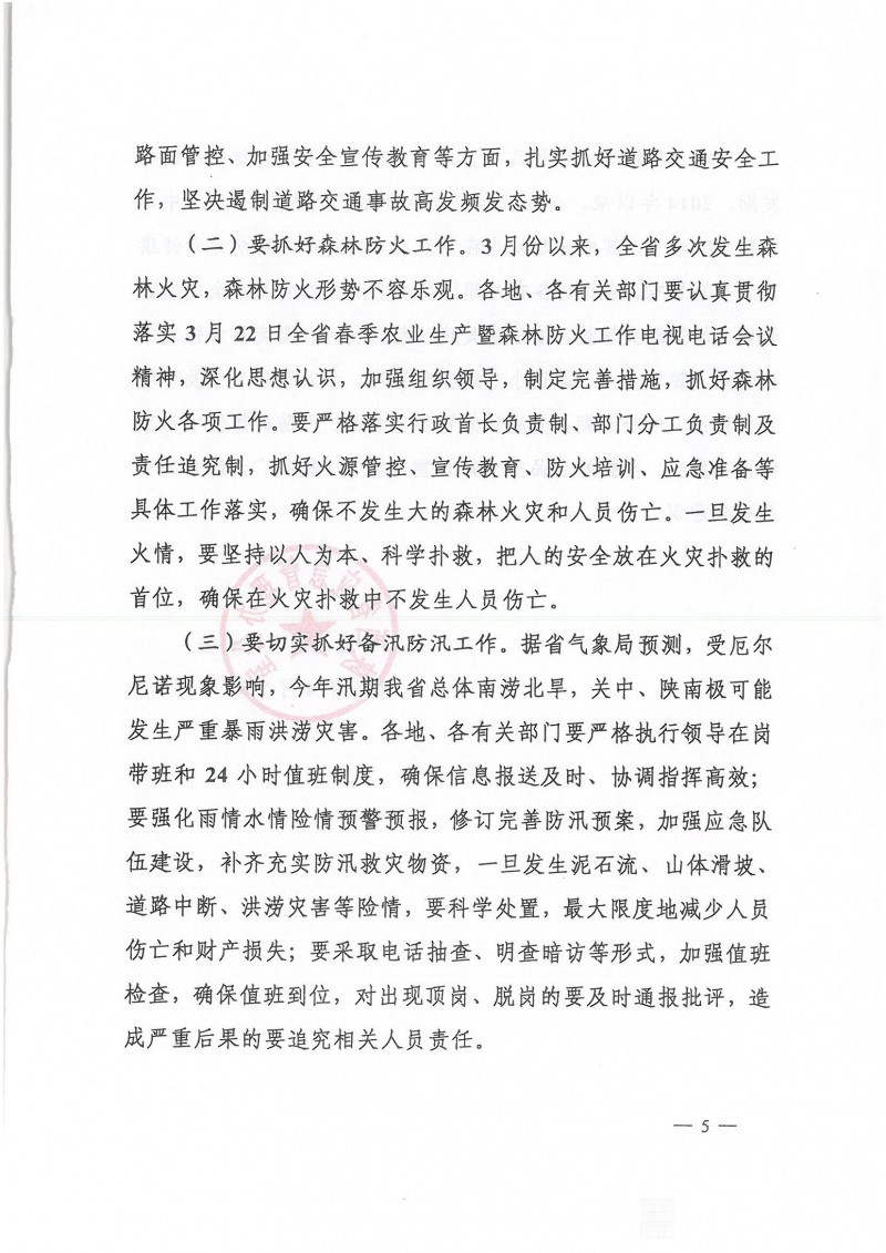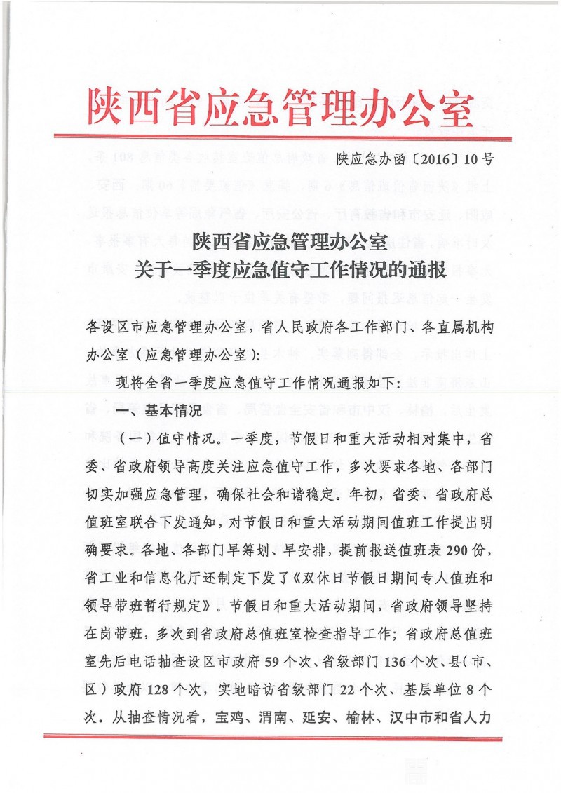 陕西省应急管理办公室关于一季度应急值守工作情况的通报