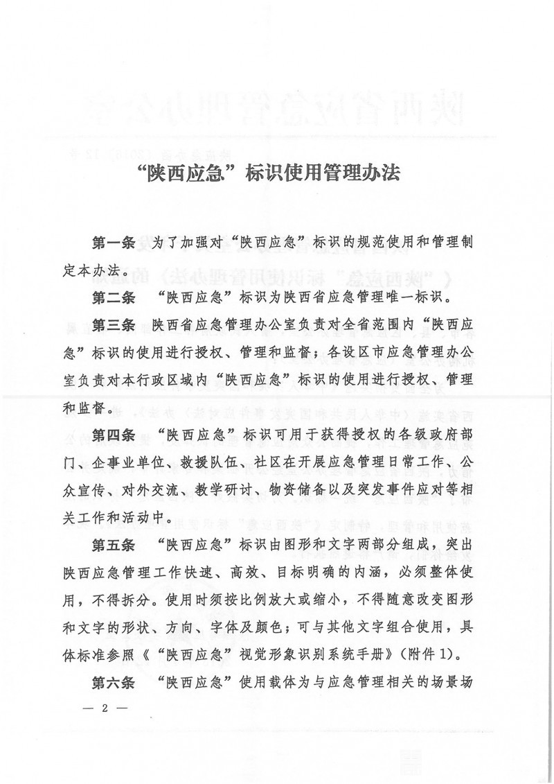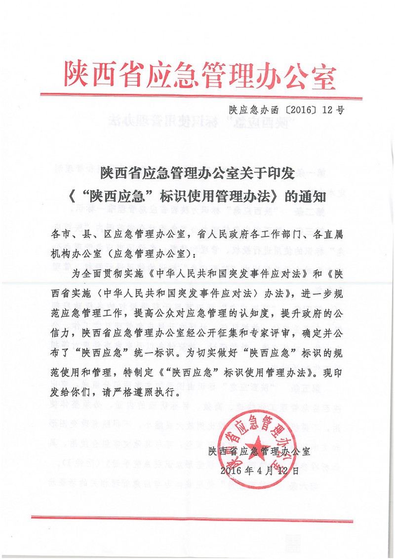陕西省应急管理办公室关于印发《“陕西应急”标识使用管理办法》的通知
