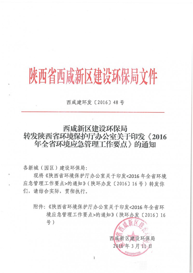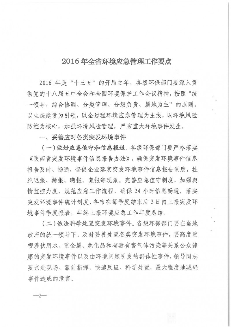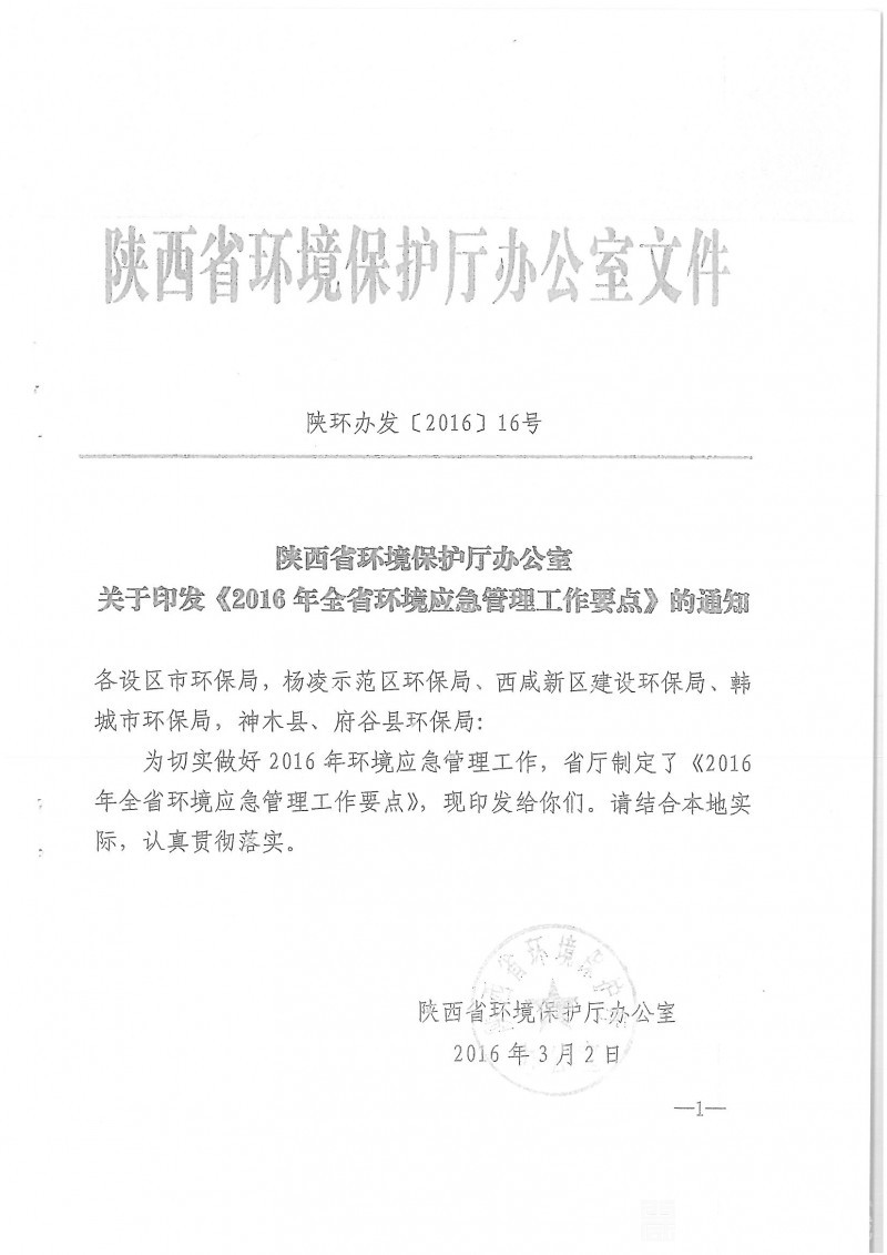 关于转发陕西省环境保护厅办公室关于印发《2016年全省环境应急管理工作要点》的通知