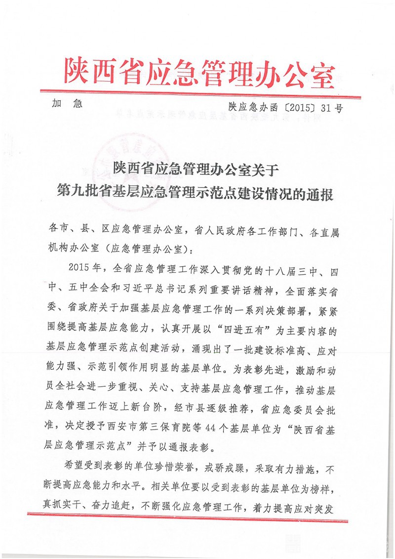 陕西省应急管理办公室关于第九批省级层应急管理示范点建设情况的通报