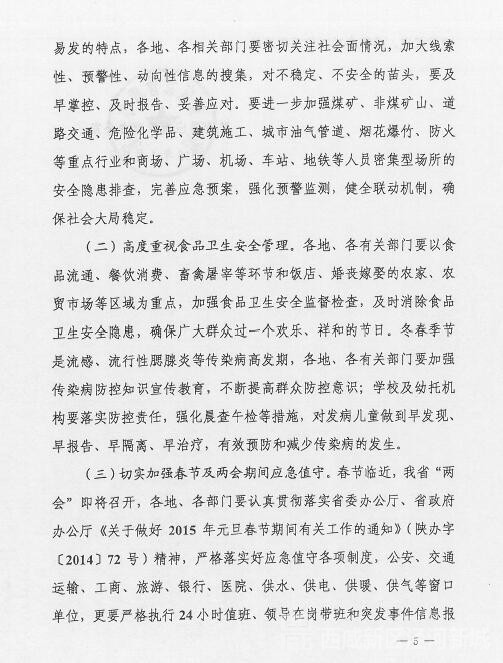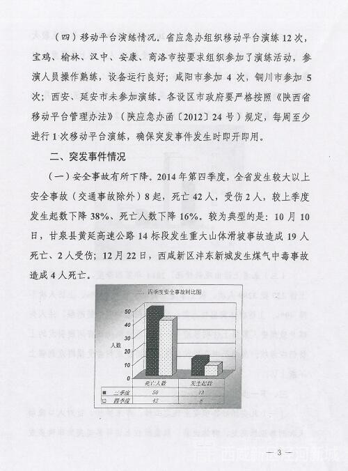 陕西省应急管理办公室关于2014年第四季度值守应急工作情况的通报