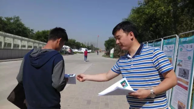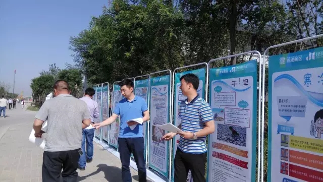 12日一大早,泾河新城产业孵化中心东大门口和茯茶镇广场便摆满了防灾减灾的宣传展板,工作人员向路人和游客不断分发“防灾减灾”的各种宣传资料。