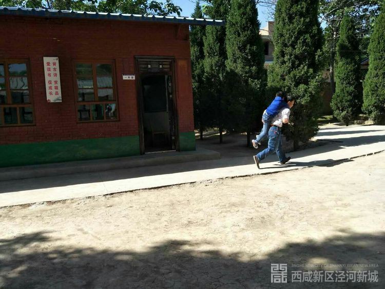 我们可敬的老师将腿脚不便的学生背出来。
